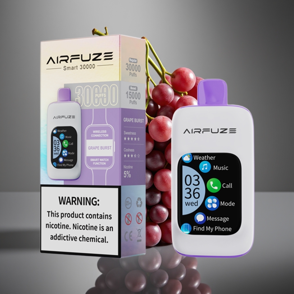 AirFuze Smart 30000 Puffs Disposable Vape Druifensmaak met 5% Nicotine, 900mAh Battery & Type-C