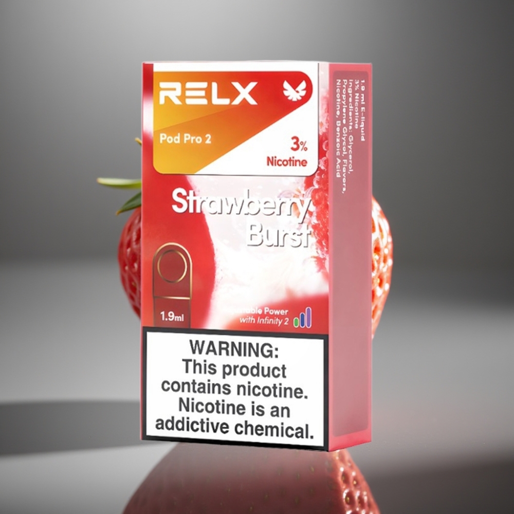 RELX Pod Pro 2 – Aardbeien Explosie 3% Nicotine – 600 Puffs – 1.9ml – 3 Voltage Modes (Eco/Smooth/Boost) – 2 of 3 Pods/Pack