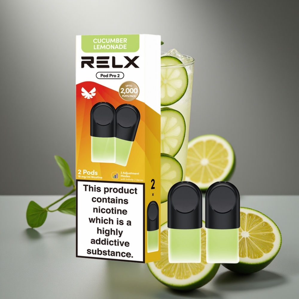 RELX Pod Pro 2 Vape Device – 1.8% Nicotine, 600 Puffs, 1.9ml, Beverage-Cucumber Lemonade, 3 Voltage Modes (5.5W/6.5W/8W), 2 or 3 Pods/Pack