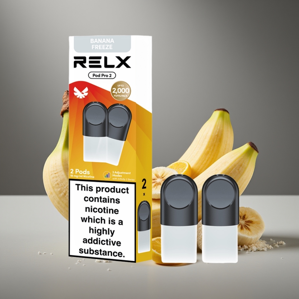 RELX Pod Pro 2 Vape Device 1.8% Nicotine Dessert-Banaan IJs – 600 puffs, 1.9ml, 2/3 pods/pack, 3 voltage modes