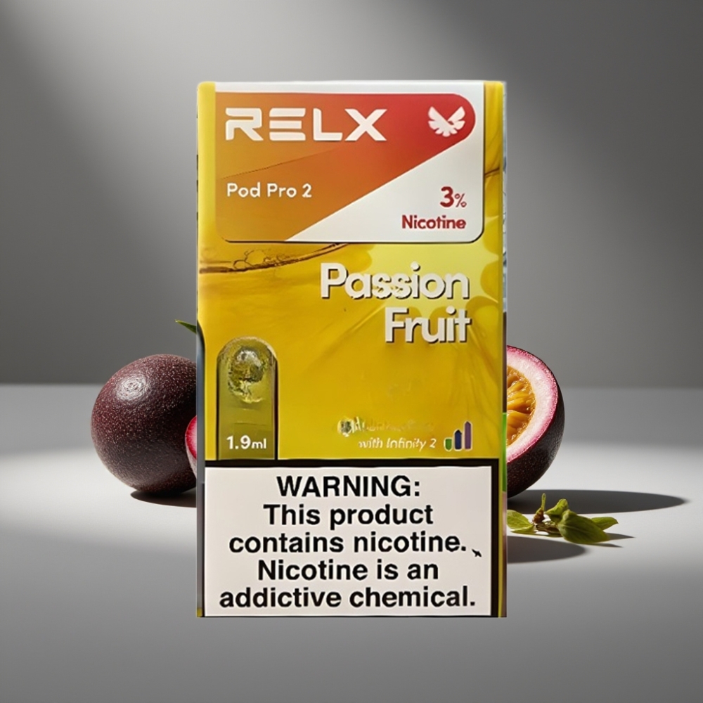 RELX Pod Pro 2 Vape Device Nicotine 3% – Passievrucht, 600 Puffs, 1.9ml, 3 Spanningsstanden (Eco 5.5W / Smooth 6.5W / Boost 8W), Verpakking: 2 of 3 pods/pack