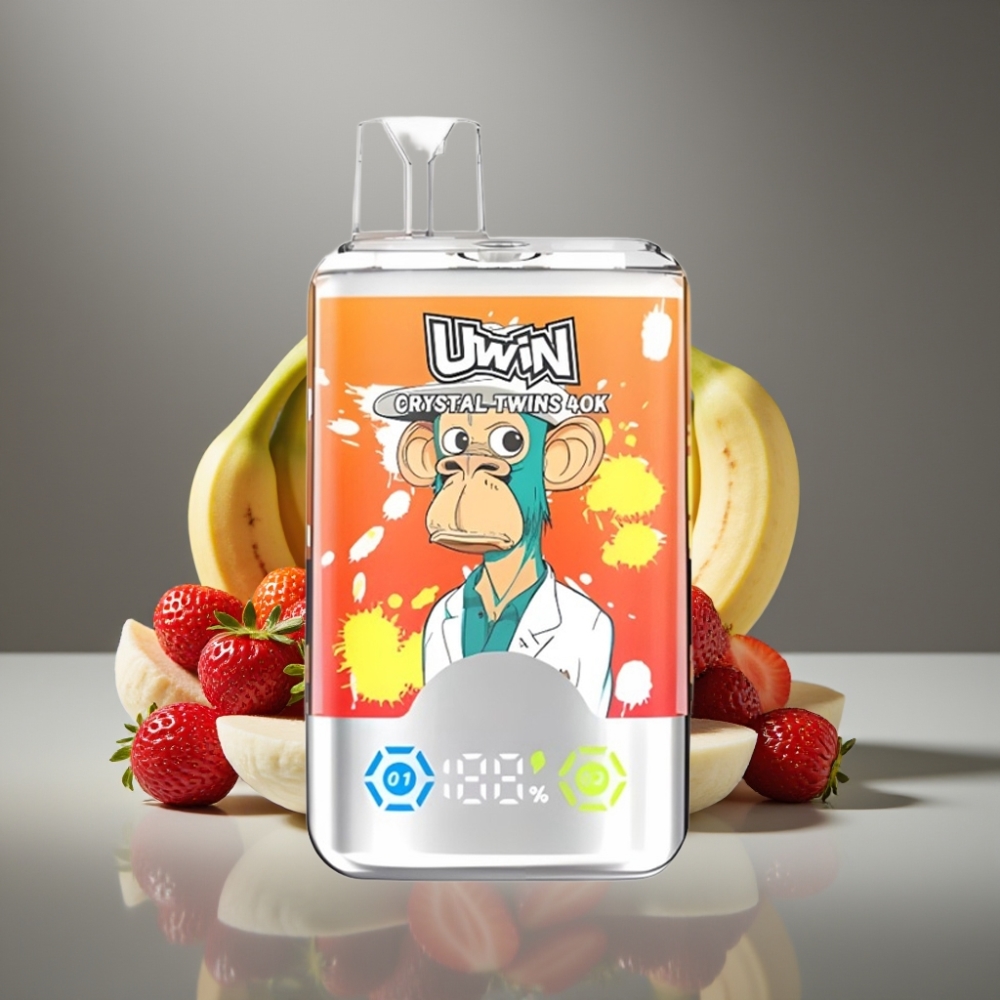 UWIN Crystal Twins 40000 Puffs Disposable Vape Aardbei Banaan Liefde 66 – 32ml E-liquid, 850mAh Battery, Type-C Oplaadbaar, 0.6 Ohm Mesh Coil, 0%/2%/3%/5% Nicotine
