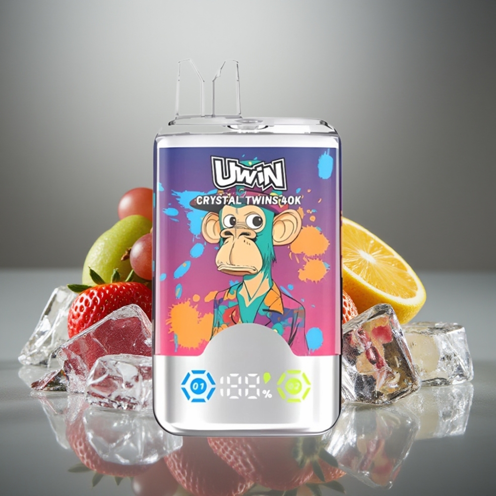 UWIN Crystal Twins 40000 Puffs Disposable Vape Aardbei Kiwi Druif IJs – 2 Smaken, 32ml, 850mAh, Type-C Opladen, 0.6 Ohm Mesh Coil, Nicotine 0%/2%/3%/5%