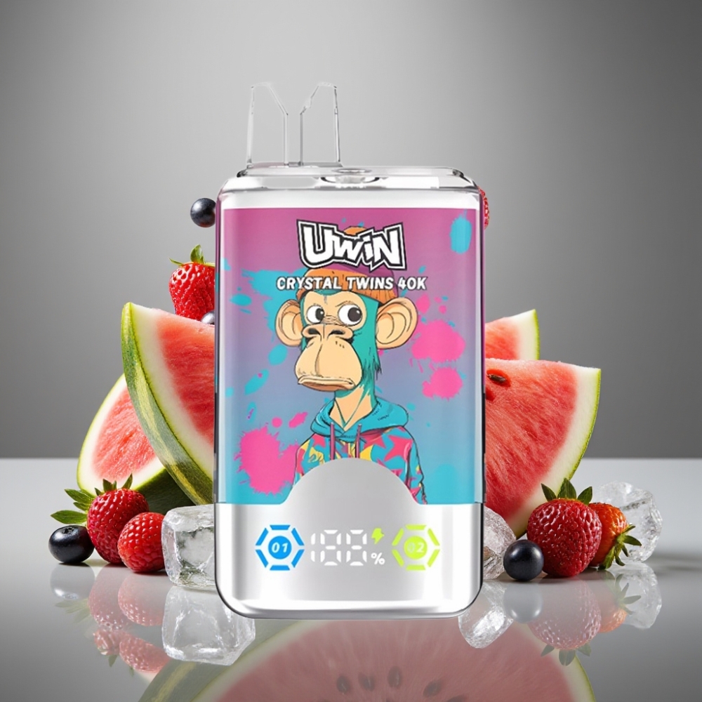 UWIN Crystal Twins 40000 Puffs Disposable Vape Watermeloen IJs & Gemengde Bessen – 32ml, 850mAh, Type-C, 0.6 Ohm Mesh Coil