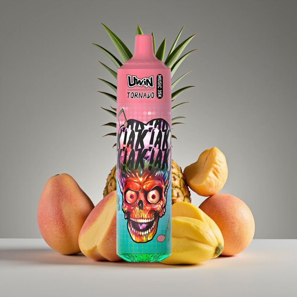 Uwin Tornado 35K Music Disposable Vape Peachy Mango Pineapple – 35.000 puffjes, 600mAh batterij, Type-C opladen, Mesh Coil 1.0 Ohm