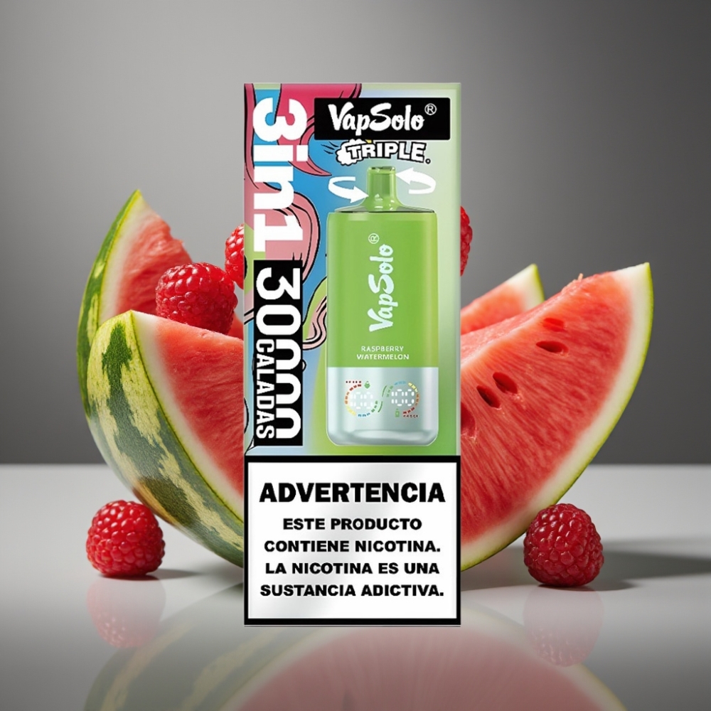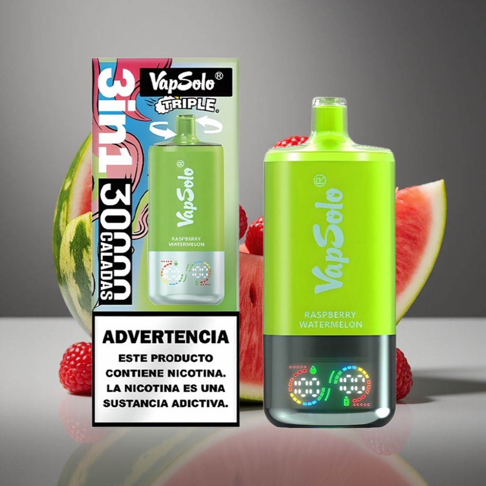 VapSolo Triple 30000 Puffs Disposable Vape Framboos Watermeloen – 40ml E-Liquid, Type-C Opladen, 3 Olie Tanks