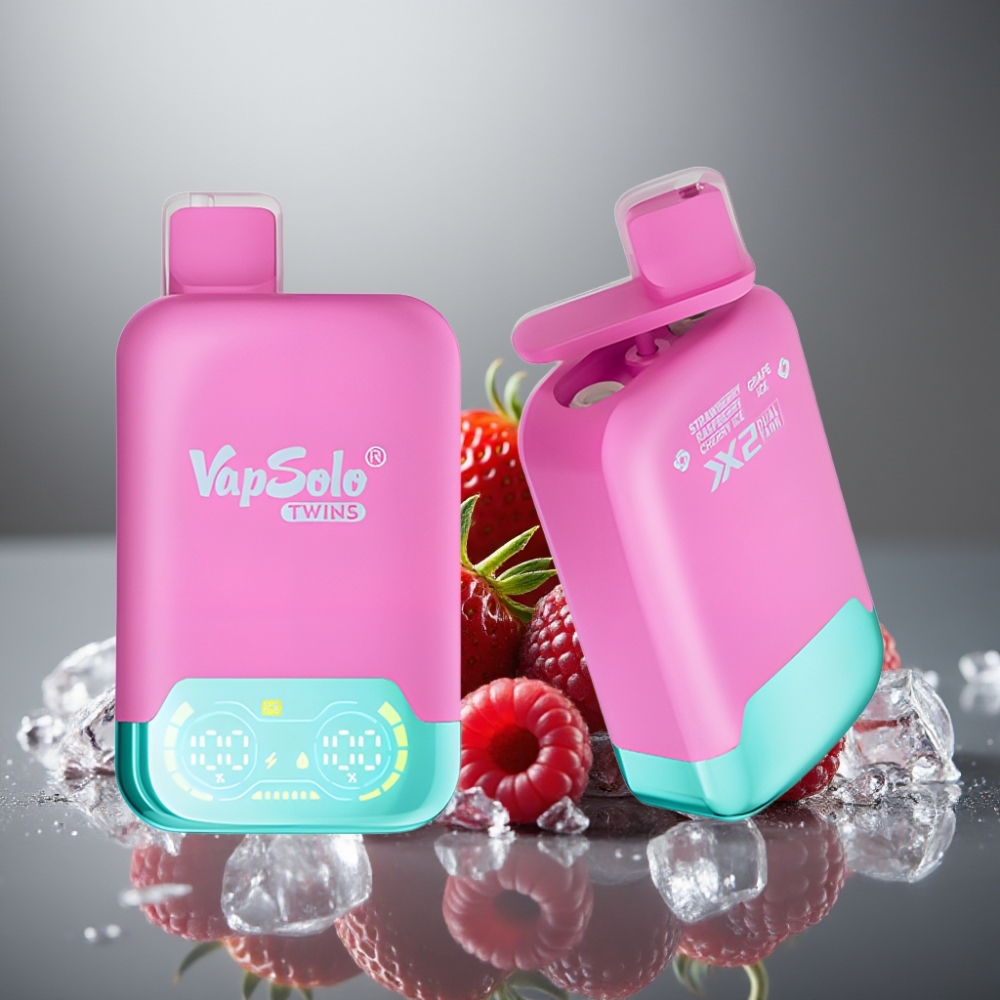 Vapsolo Twins 20000 Puffs Disposable Vape Aardbei Framboos Kers Ice & Druif Ice – 40ml E-Liquid, 2 Olie Tanks, Type-C Opladen