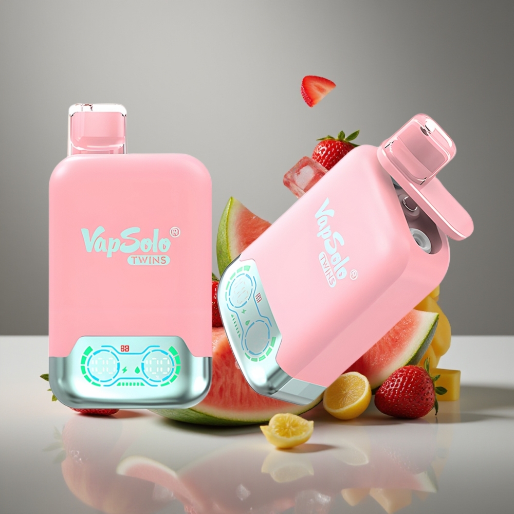 Vapsolo Twins 20000 Puffs Disposable Vape Aardbei IJs & Mango Perzik Watermeloen – 40 ml E-Liquid, 20mg/ml of 50mg/ml Nicotine, Type-C Opladen
