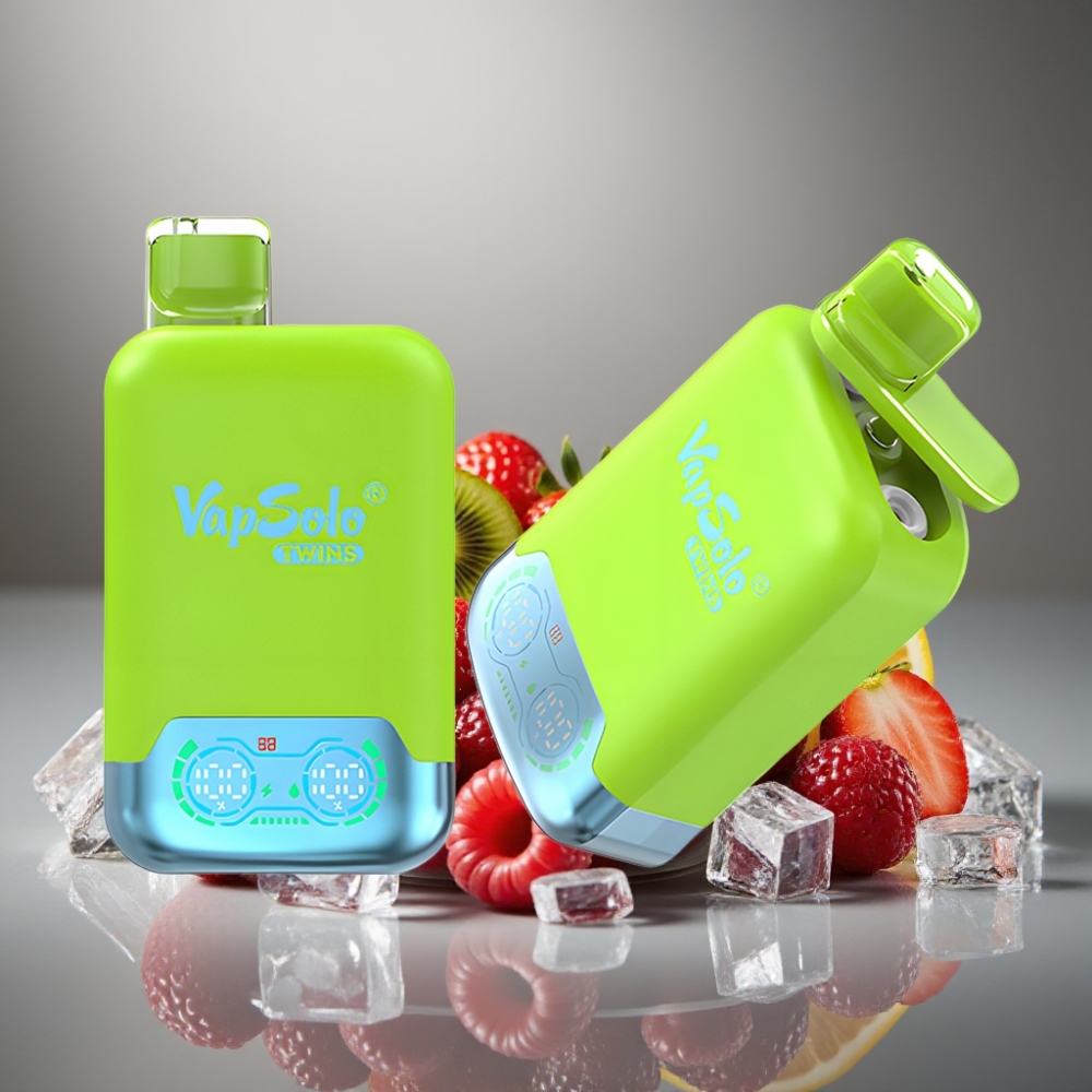 Vapsolo Twins 20000 Puffs Disposable Vape Aardbei Kiwi & Aardbei Framboos Kers Ijs – 40ml E-Liquid, 2 Olie Tanks, Type-C Opladen