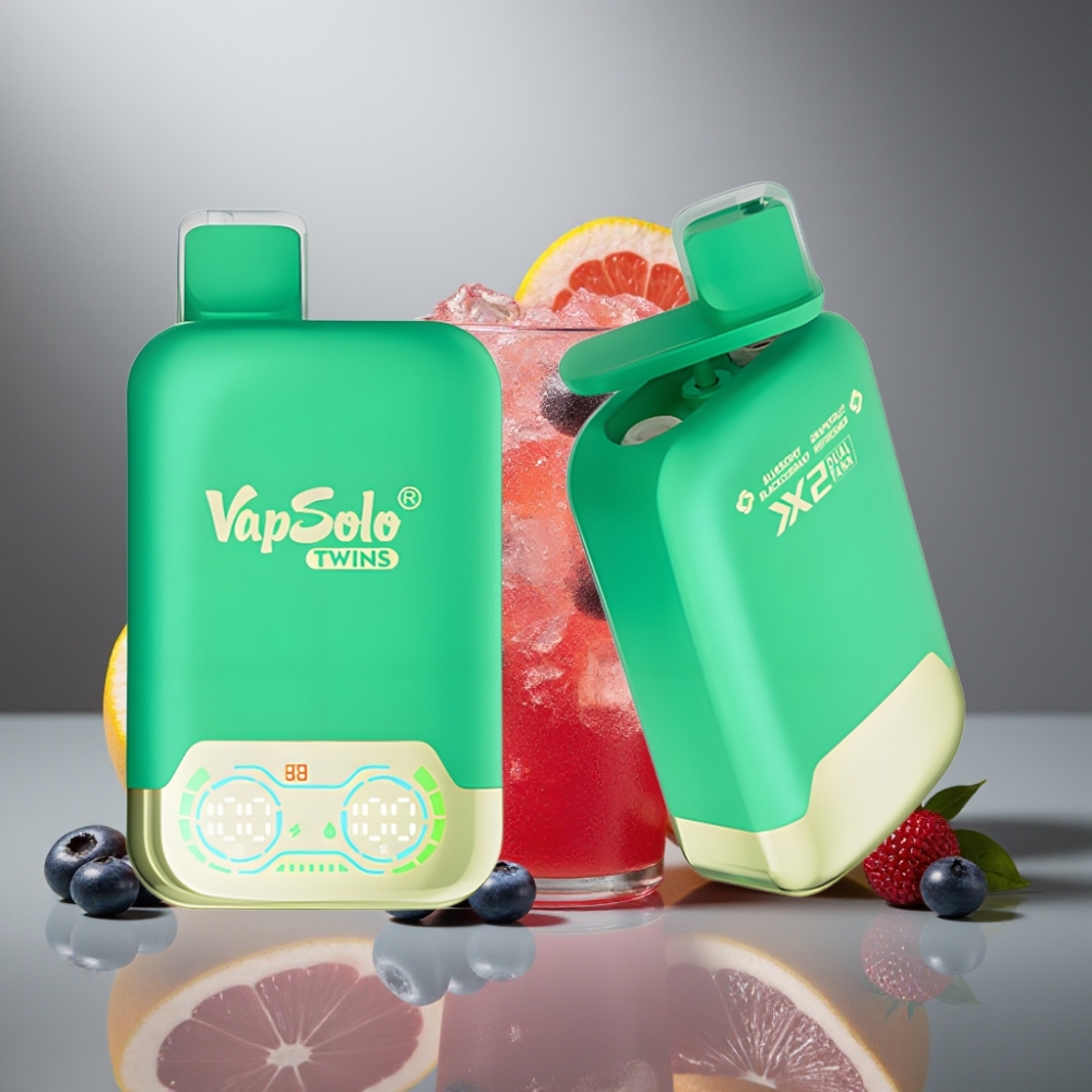Vapsolo Twins 20000 Puffs Disposable Vape Blauwe Bes Zwarte Bes & Grapefruit Verfrisser – 40 ml E-Liquid, Type-C Opladen, 2 Tanks