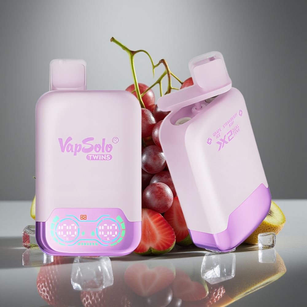 Vapsolo Twins 20000 Puffs Disposable Vape Druiven IJs & Aardbei Kiwi – 40 ml E-Liquid, 20mg/ml of 50mg/ml Nicotine, Type-C Opladen, Dubbele Tank